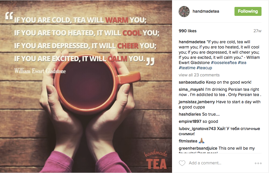 An example of some of the Handmade Tea social marketing that gets great engagement!