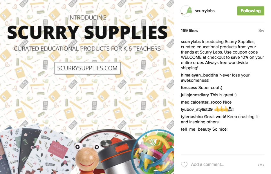 An example of some Instagram marketing for Scurry Supplies when it launched