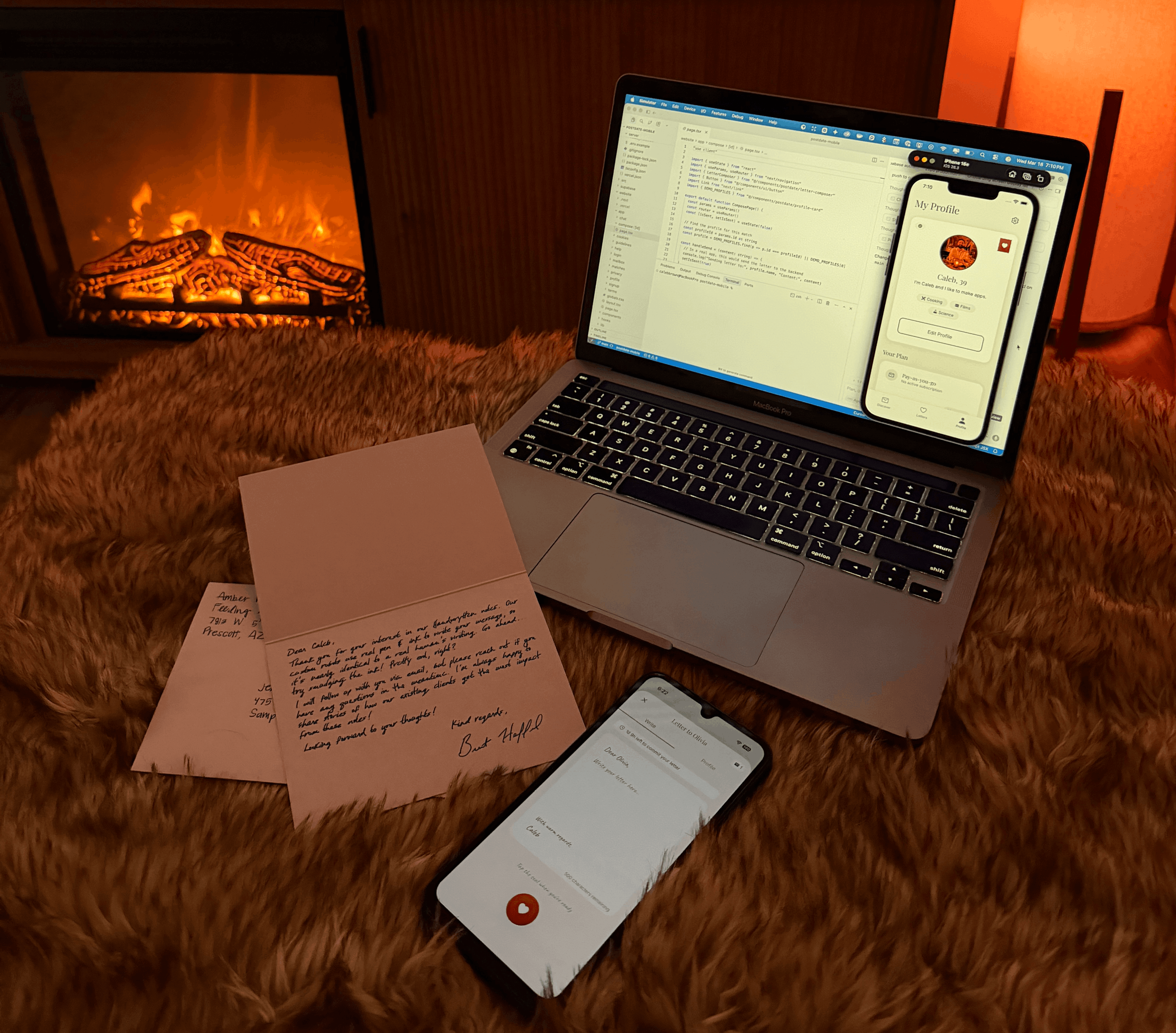 Postdate is a dating app where your first message arrives as a real letter. Users match in the app, write their first message digitally, and Postdate prints and mails it to their match while keeping both mailing addresses private; once the letter arrives, the connection continues in-app.